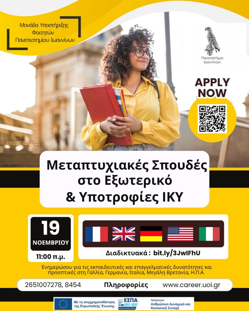 Διαδικτυακή εκδήλωση με θέμα “Μεταπτυχιακές Σπουδές στο Εξωτερικό και Υποτροφίες ΙΚΥ”_Τετάρτη 19 Νοεμβρίου 2025Αλέξανδρος Δευτεραίος03/11/2025Νέα