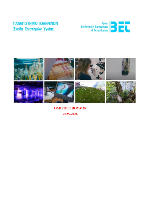 Σκοπός του Οδηγού Σπουδών είναι να παρουσιάσει το Τμήμα, την οργάνωσή του, τις υπηρεσίες που παρέχει στους φοιτητές του καθώς και ένα σύγχρονο πρόγραμμα σπουδών, το οποίο να εκφράζει τη φιλοσοφία και το γνωστικό αντικείμενο του Τμήματος.